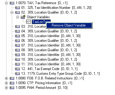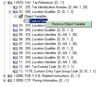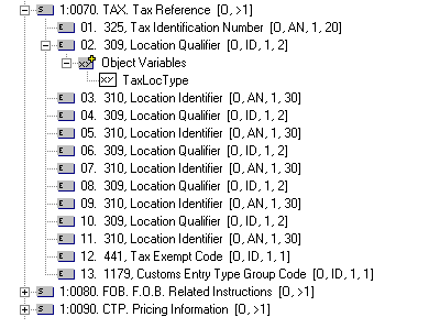the Data Segment TAX (Tax Reference). The TAX segment, in turn has an ordinal number