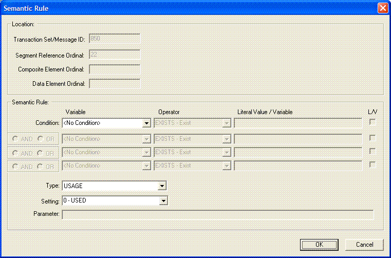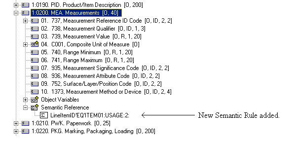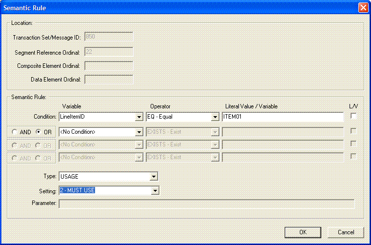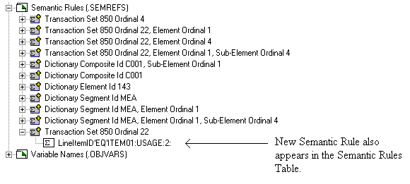 this example, the semantic rule "LineItemID'EQ'ITEM01:USAGE:2:",
