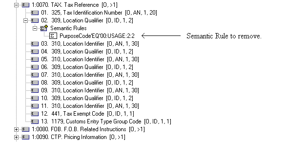 reference. As an example, we will remove the semantic rule "PurposeCode'EQ'00:USAGE:2:"