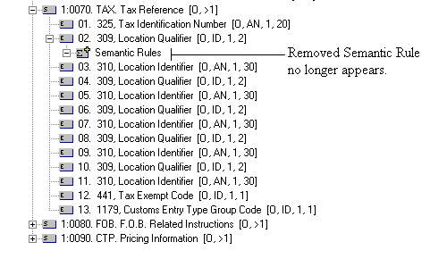 longer be displayed in the "Semantic Rules" list. In our example, the semantic rule "PurposeCode'EQ'00:USAGE:2:" should no longer be