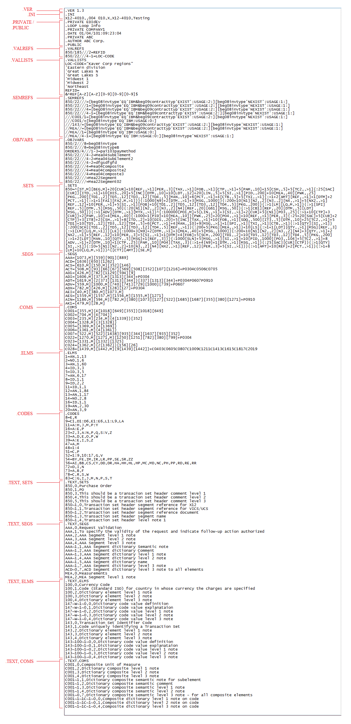 The Standard Exchange Format (SEF) is an open standard that defines the structure of a text file, which in itself describes a company's Electronic Data Interchange (EDI) implementation guideline. The SEF file is a US-ASCII text file so that it can be machine readable, but it also does accommodate for high ASCII characters. Also, because the SEF file is in US-ASCII text, the contents in the file can be modified using any text editor. Care must be taken when changes are made to the raw contents, and the format must be maintained as defined explicitly in the SEF standard. To download the original SEF documentation describing the SEF standard, please visit www.edidev.com.